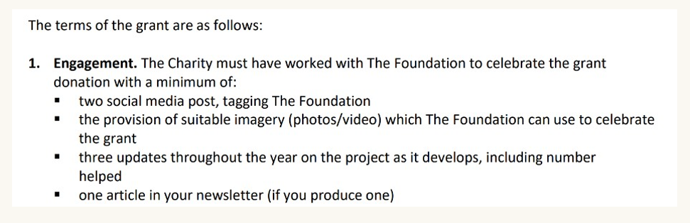 1) Clarity about grantmaking style and communication preferences helps charities understand what kind of relationship to expect and what funders are (and aren’t) hoping to receive. For example, funders might make clear whether they prefer:
