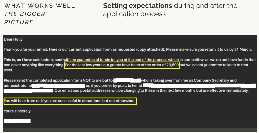 grantmakers communicating delays or changes clearly, recognising the knock‑on effects for charities staffing and services